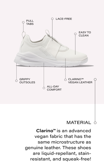 Built with Clarino™, these shoes are liquid-repellant, stain-resistant, and squeak-free!